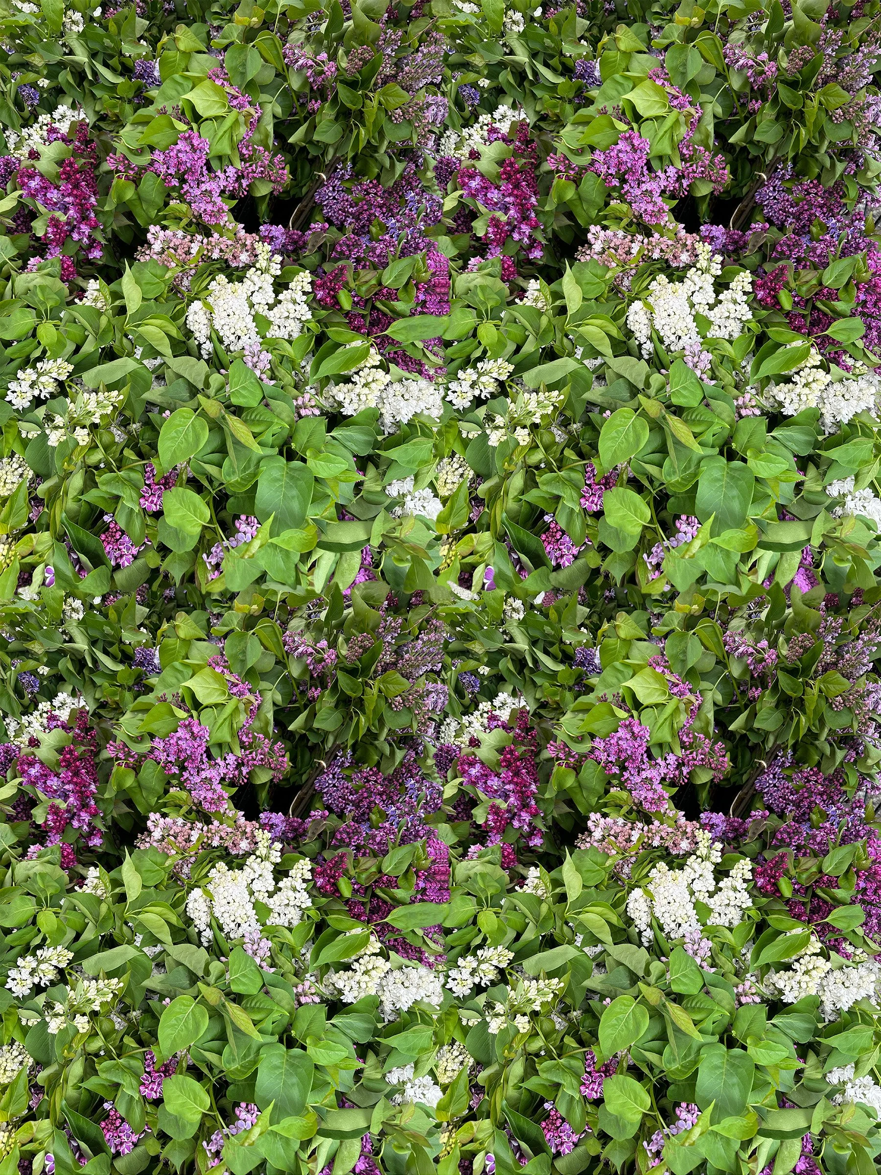 Weaving Pattern: For this pattern, I used a photo of a flower bush. This allowed me to seamlessly weave four identical images together. Once I created a cohesive image, I used Photoshop to recolor it.