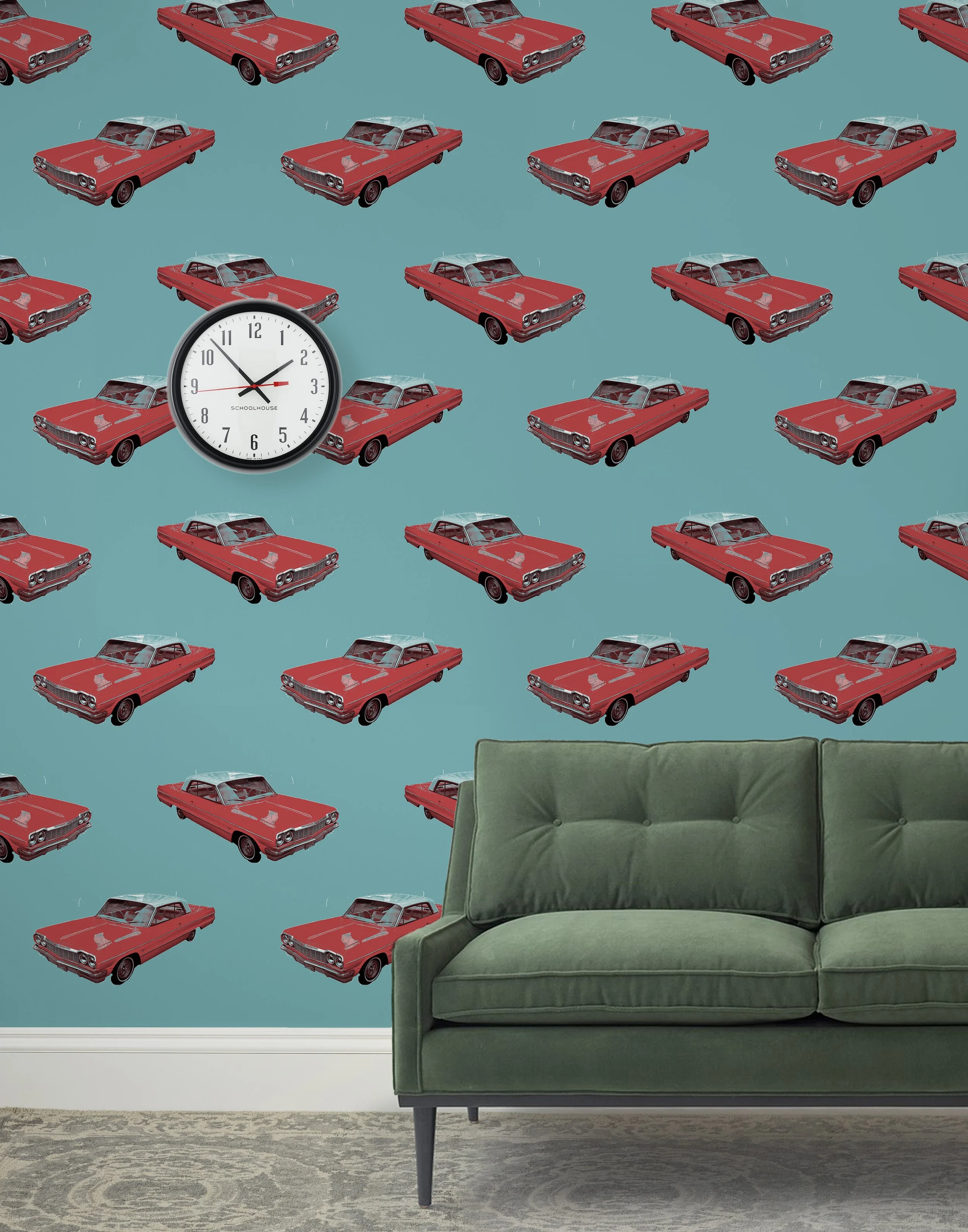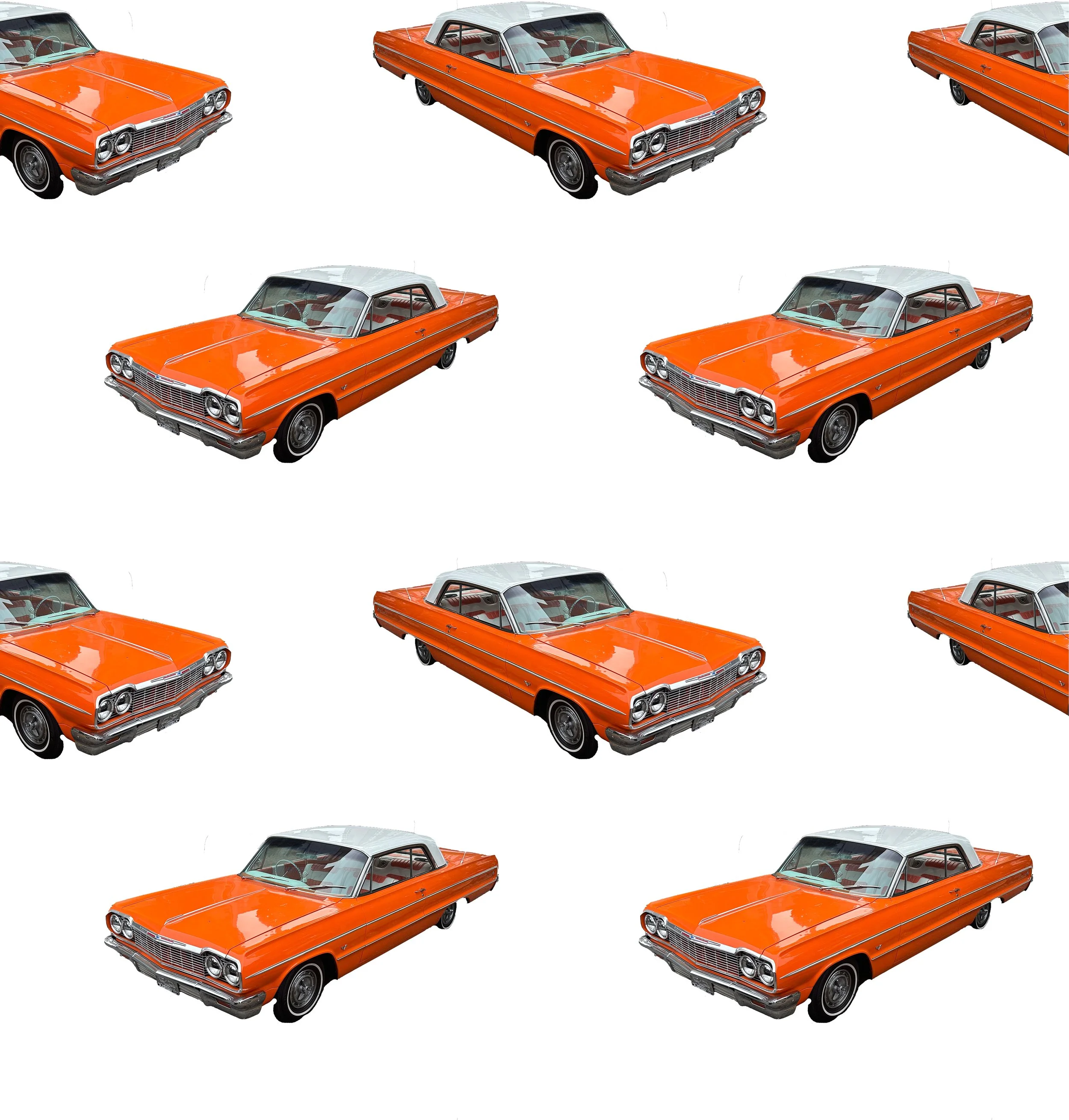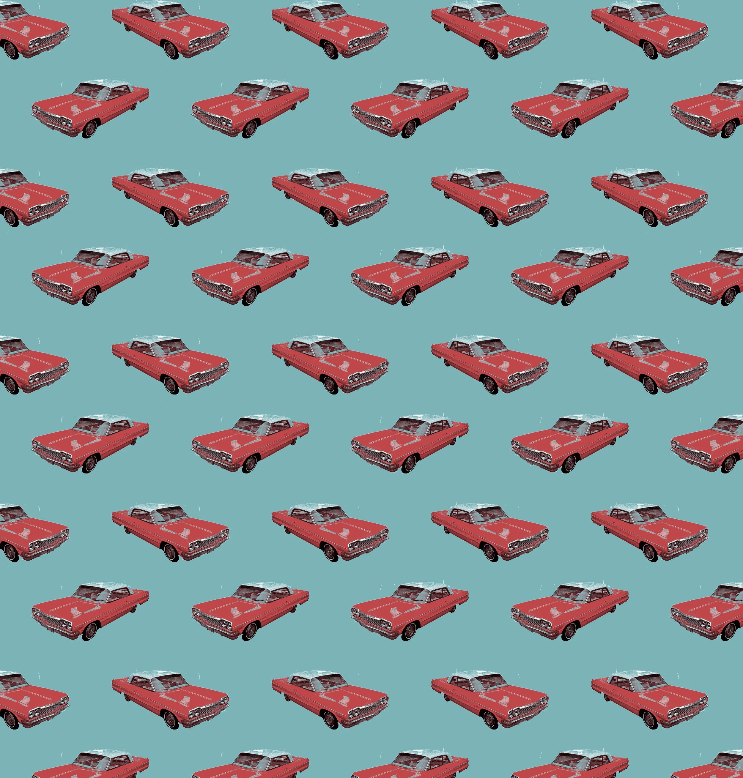 Baguette Pattern: I took a picture of an old car I found while walking around downtown. Using Photoshop, I cut out the background, adjusted the orientation of the car, and repeated the pattern. Then, I recolored it and added a new background.
