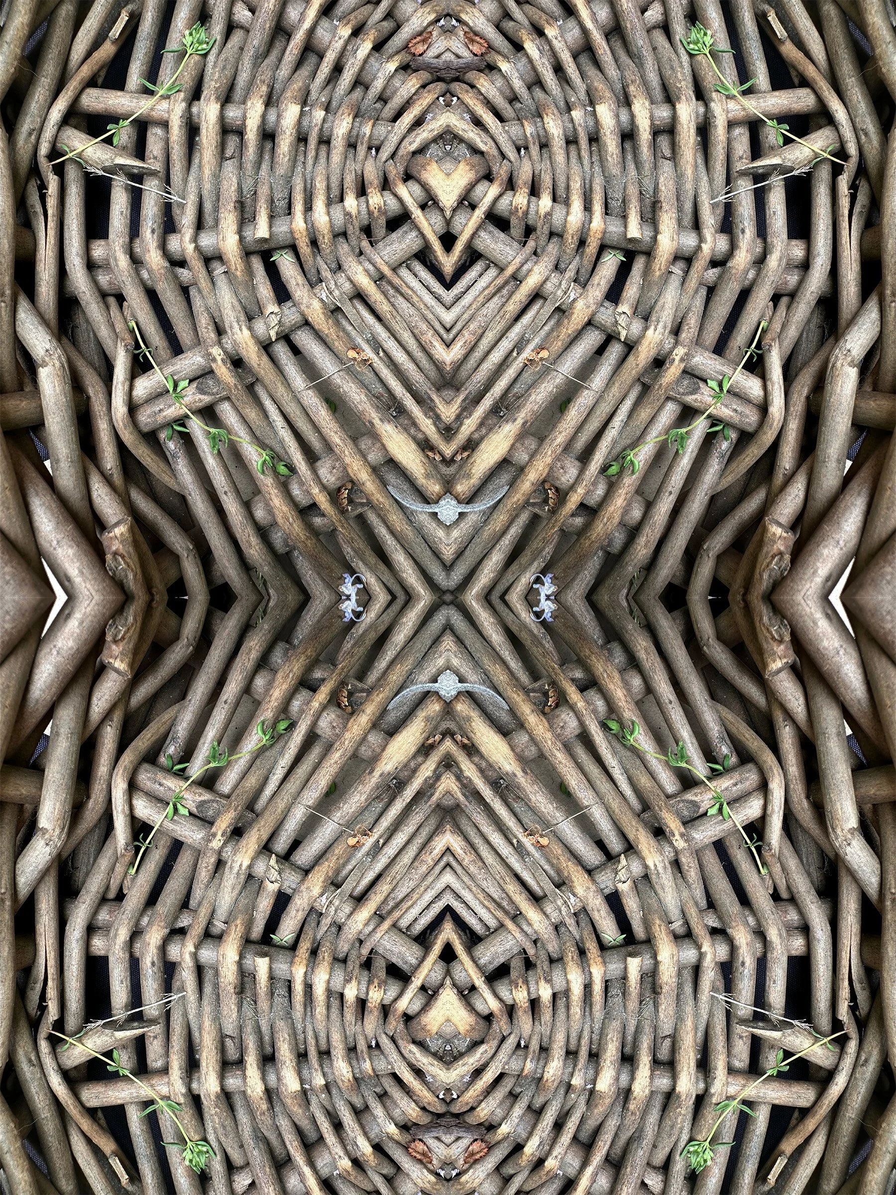 Mirroring Pattern: For this pattern, I used a photo of a basket I saw at the Saturday Market at PSU. I thought the texture of the basket would be fun and interesting when applying this technique. Using Photoshop, I then mirrored the image and then recolored it.