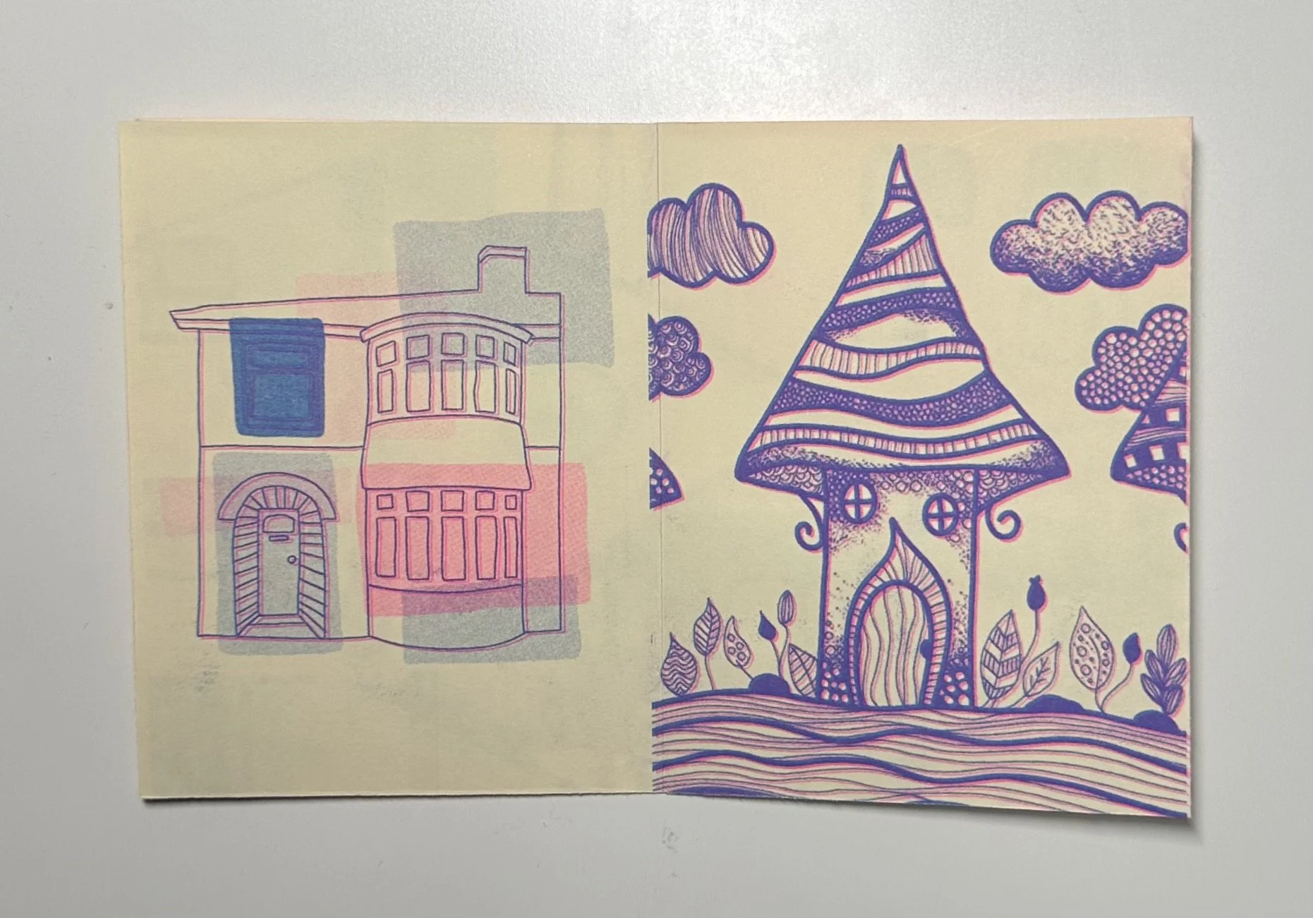 While at Portland State, I learned about the world of Risograph printing by attending several Riso workshops. These workshops introduced me to the unique capabilities and aesthetic qualities of Risograph printing. I explored various techniques, including layering colors and experimenting with different textures and patterns. The versatility of the Riso allows for a wide range of printed materials, from zines and posters to art prints and brochures. Here are some of the projects I created and printed using the Riso.